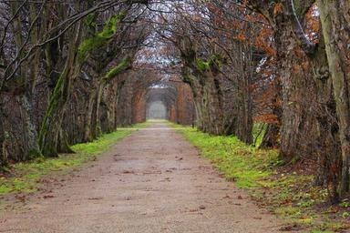 Keywords: avenue trees away park autumn nature tree lined avenue schloss seehof