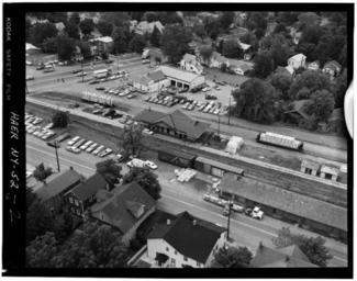 | Keywords: Avon Station LOC1971.jpg en Aerial view of station track side taken July 1971 - Erie Railway Avon Station Railroad Avenue Avon Livingston County NY 1971 Library of Congress http //lcweb2 loc gov/service/pnp/habshaer/ny/ny1100/ny1189/photos/117092pv jpg unknown Collections Historic American Buildings Survey/Historic American Engineering Record/Historic American Landscapes Survey other versions PD-USGov Uploaded with UploadWizard Avon Erie Railroad station 1971 in rail transport in the United States |