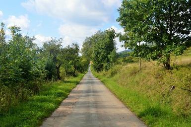 Keywords: away landscape nature green avenue path trail hiking trees rest autumn sky