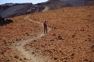 Keywords: away path wanderin hiking trace sand desert lunar landscape migratory path pumice stone lava teide national park tenerife canary islands