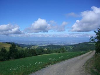 Keywords: away trail outlook black forest rhine valley view wide landscape nature clouds sky blue vision foresight panorama distant view