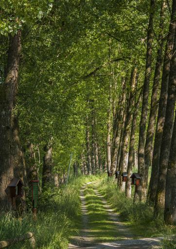 Keywords: away way of the cross avenue trees mood shady holidays hiking tree lined avenue nature green large trees shadow walk light spring summer moor nature conservation recovery garden