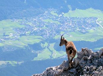 Keywords: Axams und Steinbock.jpg en Axams seen from Hintere Brandjochspitze Northeast capricorn de Axams von der Hinteren Brandjochspitze Nordosten gesehen Steinbock own Svickova 2004-09-18 Axams Capra ibex Tiroler Mittelgebirge