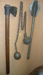 | Keywords: Axe flail mace GIM.jpg slungshot and shestopior Russia XVI cent ru Боевой топо уда ные г узы кистеня на цепочке шестопё Россия начало XVI века Железо ковка own Лапоть 2010 Ball and chain flails of Russia Battle axes of Russia Flanged maces Pernach Weapon in Moscow State Historical Museum Maces of Russia |