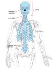 | Keywords: Axial skeleton diagram fr.svg The axial skeleton consists of the bones in the head and trunk of the human body It is composed of five parts; the human skull the ossicles of the inner ear the hyoid bone of the throat the chest and the vertebral column The axial skeleton and the appendicular skeleton together form the complete skeleton from LadyofHats' Axial_skeleton_diagram svg 2007-02-15 LadyofHats Mariana Ruiz Villarreal LadyofHats Other versions/Axial skeleton SVG files on human skeleton Anatomical plates and drawings in French Anatomical plates and drawings of human bones Axial skeleton SVG diagrams in French |