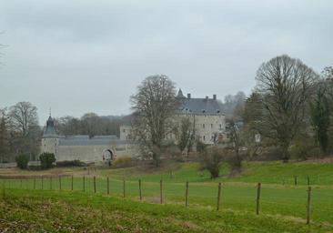 Keywords: aywaille belgium landscape scenic sky clouds palace castle architecture landmark historical field grass fence nature outside country countryside