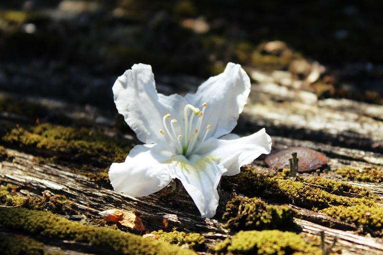 Keywords: azaleas blossom bloom plant spring bloom close garden nature blossom moss background wood white