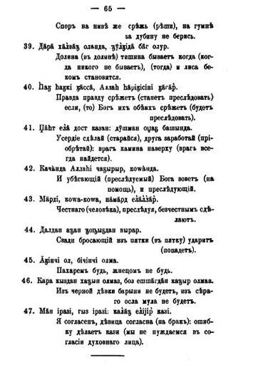 | Keywords: Azerbaijani proverbs 65.jpg en Page with Azerbaijani proverbs written by Alexander Kalashev from the words of Hasan Kerimov inhabitant of Yelizavetpol town nowadays Ganja Сбо ник мате иалов для описания местностей и племен Кавказа Выпуск восемнадцатый Отдел II Ст 65 Azerbaijani proverbs written by Alexander Kalashev from the words of Hasan Kerimov 1894 PD-old Azerbaijani proverbs Azerbaijani manuscripts | ||||