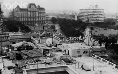 | Keywords: Azoteas de la Casa Rosada..jpg es La lucha ha cesado Esta antigua fotografía muestra algunos de los daños en las azoteas de la Casa Rosada Al fondo el palacio del Ministerio de Comunicaciones A la derecha el Ministerio de Marina Detrás el sector portuario 1955 http //fdra blogspot de/2014/01/revolucion-libertadora-el-bombardeo-de html Argentine Media other versions Custom license marker 2015 02 11 PD-AR-Photo Uploaded with UploadWizard 1955 coup d'état in Argentina Revolución Libertadora Casa Rosada Buenos Aires |