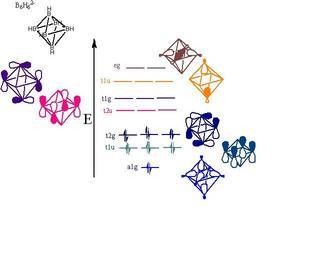 | Keywords: B6H6MOdiagram.jpg en Mo diagram of B6H6 made in chem draw std Copied from Cotton Chemical Applications of Group Theory pg 234 and Douglas Concepts and Models of Inorganic Chemistry pg 828 own Chem507f094 2009-12-03 Boranes Molecular orbitals energy levels |