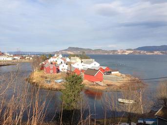 Keywords: børsøra trøndelag peninsula iceland town houses lake river mountain landscape