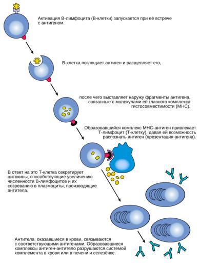 | Keywords: B cell activation - ru.svg Inkscape 26 Diagrams ru Реханизм активации B-лимфоцитов en When a B cell encounters its triggering antigen it gives rise to many large cells known as plasma cells Every plasma cell is essentially a factory for producing an antibody Each of the plasma cells descended from a given B cell manufactures millions of identical antibody molecules and pours them into the bloodstream 2014-07-22 00 31 42 File B cell activation png http //www niaid nih gov/Pages/default aspx The National Institute of Allergy and Infectious Diseases NIAID PD-USGov <gallery> B cell activation svg English version B cell activation png PNG English version </gallery> ru image Translate Uploaded with UploadWizard Cell diagrams Lymphocytes SVG diagrams in Russian SVG cell biology |
