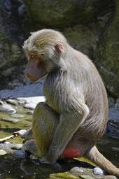 Keywords: baboon monkey sit primate creature monkey family nature tiergarten