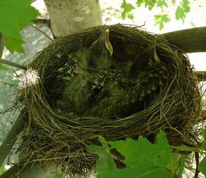 Keywords: Baby birds in a nest in a tree in Riverdale NJ.jpg en Baby birds in a nest in a tree in Riverdale New Jersey 2012-07-09 own Tomwsulcer cc-zero Uploaded with UploadWizard Turdus migratorius nests with chicks