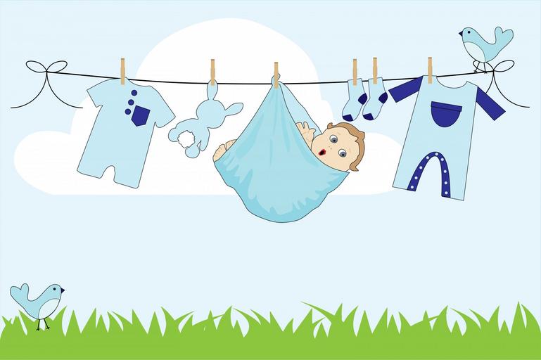 Keywords: baby boy baby boy clothes line laundry washing clothes line blue sky clouds grass birds cute art card template birth new announcement baby shower born