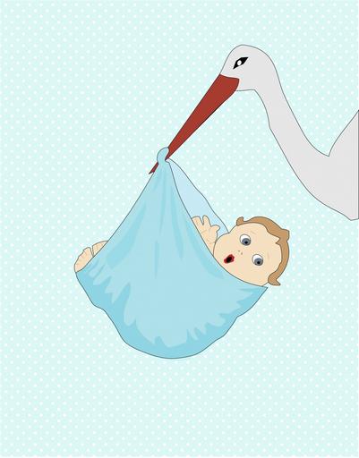 Keywords: baby boy boy baby cute surprised carried blue blanket polka dots white stork new new born arrival announcement birth baby shower card template card making art