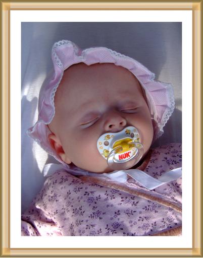 Keywords: baby infant child small child girl sleep sleeping dream snooze childhood love live new my honey pacifier close frame gold