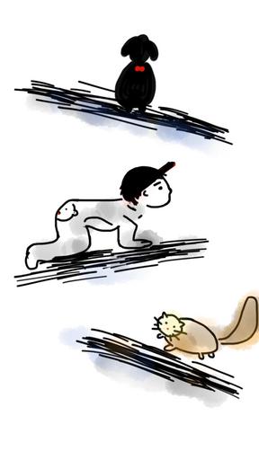 Keywords: baby kid pets dog cat child boy cute childhood happy little fun crawl floor kids playing happy kid little boy indoor together playful play joy cheerful playing animal sketch doodle