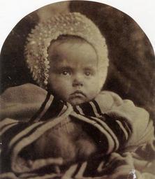 | Keywords: Baby 'Pictet', by Julia Margaret Cameron.jpg Baby 'Pictet' One year Old Infant shipwrecked once in the Madras Surf again in the wreck of the Colombo Steamer Subject is Georgina Anna Mary Pictet daughter of Captain Francis Pictet of the Madras Native Infantry and Rose Prinsep Mackenzie Julia Margaret Cameron's niece Albumen print 172 x 148mm 6 3/4 x 5 7/8 National Museum of Photography Film Television Bradford Scanned from Colin Ford's Julia Margaret Cameron 19th Century Photographer of Genius ISBN 1855145065 1864-04 creator Julia Margaret Cameron PD-old-100 Julia Margaret Cameron 19th Century Photographer of Genius Photographs by Julia Margaret Cameron in the National Media Museum Portrait photographs in the National Media Museum collection 1864 portrait photographs |