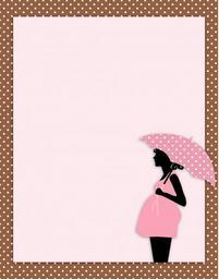 Keywords: baby shower card template pregnant woman female umbrella polka dots pink brown cute silhouette scrapbooking illustration