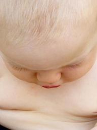 Keywords: baby small child face fluff hair growth hair view look examine blond expression skin baby fat fat