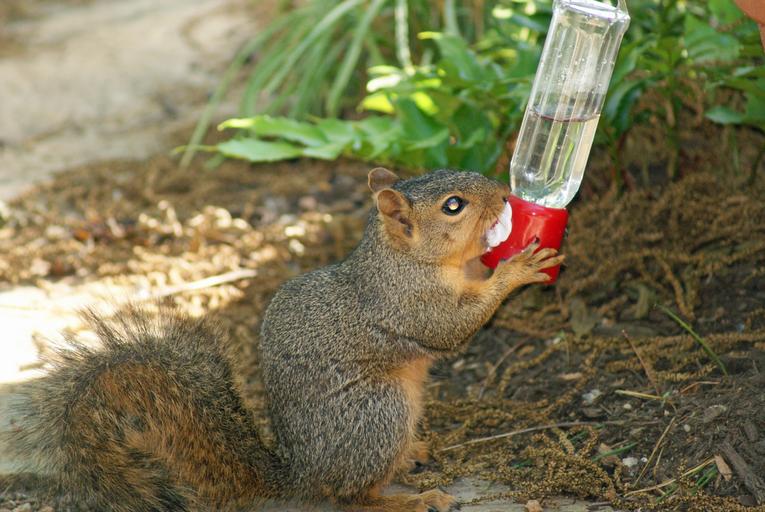 Keywords: baby squirrel hummingbird feeder thirsty drinking water
