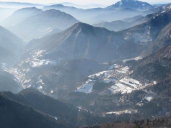 Keywords: BacaPriPodbrdu1.JPG en Bača pri Podbrdu village in Slovenia view from Sorica ski resort own Sl-Ziga 2009-01 Bača pri Podbrdu Forests in Slovenia in snow Winter in Slovenia Fog in Slovenia