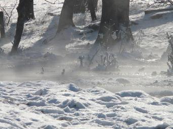 Keywords: bach steam fog haze mystical waters bank water running winter hoarfrost snow deep snow wintry