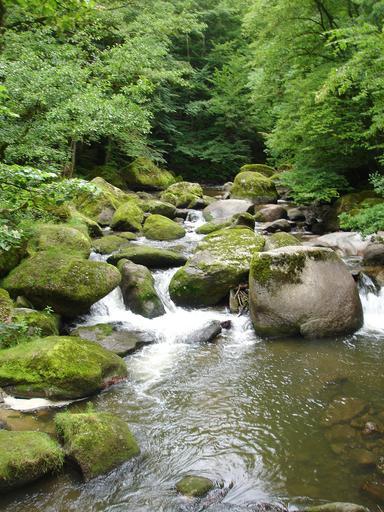 Keywords: bach stones water running mountain stream forest nature moss bubble waters wilderness nature reserve shrubs water trees