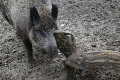 Keywords: bache launchy wild boars mother and child wild boar quagmire mud muddy scratching themselves scrub rub imitation learn behavior pigs