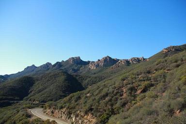 Keywords: boney mountain trails landscape outdoor hill mountainside ridge foothill cliff crag mountain ridge mountain peak Just before the road looking over to Sandstone Peak Just before the road looking over to Sandstone Peak