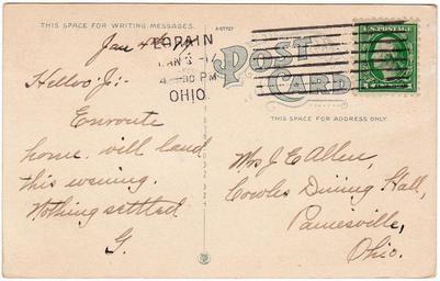 | Keywords: postcard postmarked 1917 used curt teich co. curtteichco ohio c.t. american art ctamericanart allen cowles painesville, ohio painesvilleohio divided back dividedback white border era whiteborderera white border whiteborder stamp 1910s cancel wwi-era wwiera during wwi duringwwi stamps text writing document Description on front of card: Broadway, Lorain, Ohio. Publisher: C.T. American Art by Curt Teich Co., Chicago, Illinois Postmark on card: Jan 8, 1917 4:30 p.m. Message: Jan 4th, 17 Hello J: Enroute home. will laud this evening Nothing settled. G. Addressed to: Mrs. J.E. Allen Cowles Dining Hall Painesville, Ohio Used. Publisher Note: Curt Teich emigrated to Chicago in 1895. He had worked as a lithographer in Lobenstein, Germany. He founded the Curt Teich Company in 1898, concentrating on newspaper and magazine printing. He was an early publisher of postcards, but he didn't begin printing them himself until 1908. According to MetroPostcard.com, "As his competition dwindled, his sales expanded and his American factories would eventually turn out more postcards than any other in the United States. " The company was best known for their wide range of advertising and postcards of North America. By the 1920s, it was producing so many postcards with borders that they became recognized as a type dubbed "White Border Cards," creating an "era." Curt Teich started using offset presses in 1907, but it took a number of years before he had offset presses made to his satisfaction, and many more years for him to perfect the method. His innovations in this printing technique directly led to the production of what we now call "linens" by the early 1930s. The company aided the war effort during the second world war by also printing many military maps. Curt Teich eventually turned management of the company over to his son, but he remained active in company operations throughout its history. Curt Teich died in 1974 and the family business was sold to Regensteiner Publishers who continued to print postcards at the Chicago plant until 1978 when the rights to the company name and processes were sold to the Irish company, John Hinde Ltd. Their California subsidiary now prints postcards under the name John Hinde Curteich, Inc. Source: www.metropostcard.com/publisherst.html Description on front of card: Broadway, Lorain, Ohio. Publisher: C.T. American Art by Curt Teich Co., Chicago, Illinois Postmark on card: Jan 8, 1917 4:30 p.m. Message: Jan 4th, 17 Hello J: Enroute home. will laud this evening Nothing settled. G. Addressed to: Mrs. J.E. Allen Cowles Dining Hall Painesville, Ohio Used. Publisher Note: Curt Teich emigrated to Chicago in 1895. He had worked as a lithographer in Lobenstein, Germany. He founded the Curt Teich Company in 1898, concentrating on newspaper and magazine printing. He was an early publisher of postcards, but he didn't begin printing them himself until 1908. According to MetroPostcard.com, "As his competition dwindled, his sales expanded and his American factories would eventually turn out more postcards than any other in the United States. " The company was best known for their wide range of advertising and postcards of North America. By the 1920s, it was producing so many postcards with borders that they became recognized as a type dubbed "White Border Cards," creating an "era." Curt Teich started using offset presses in 1907, but it took a number of years before he had offset presses made to his satisfaction, and many more years for him to perfect the method. His innovations in this printing technique directly led to the production of what we now call "linens" by the early 1930s. The company aided the war effort during the second world war by also printing many military maps. Curt Teich eventually turned management of the company over to his son, but he remained active in company operations throughout its history. Curt Teich died in 1974 and the family business was sold to Regensteiner Publishers who continued to print postcards at the Chicago plant until 1978 when the rights to the company name and processes were sold to the Irish company, John Hinde Ltd. Their California subsidiary now prints postcards under the name John Hinde Curteich, Inc. Source: www.metropostcard.com/publisherst.html |