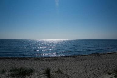 Keywords: background beach sea sky blue water sand empty baltic sea nature sand beach bornholm summer quiet holiday