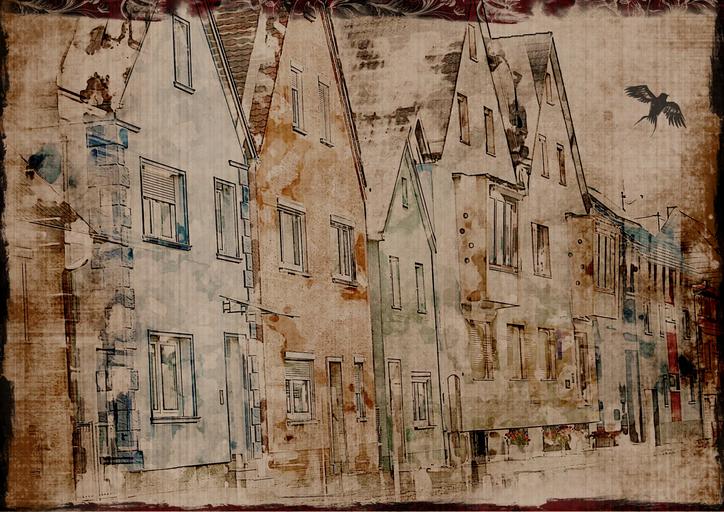 Keywords: background grunge old houses town bird street building architecture city travel historic urban exterior cityscape antique wall brown beige drawing scrapbook collage art design