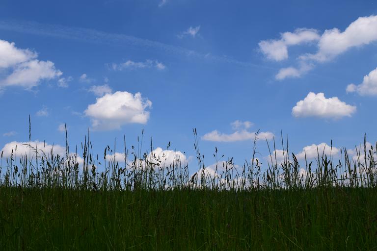 Keywords: background horizon sky clouds mood blue landscape meadow grass green white vision