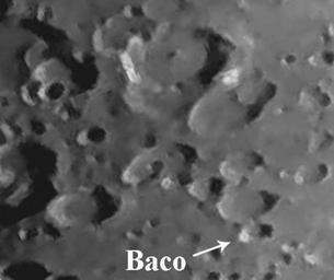 | Keywords: Baco.jpg Lunar Crater BACO in southern visible hemisphere <br /> probably named after its funny manyfooted shape ;- Cratère lunaire BACO hémisphère visible Sud photo personelle d'astronomie moi même Christian Béghin Le 10 Juillet 2008 à 20h30 h locale d'été Je confirme par la présente être l'auteur et le titulaire unique et exclusif de l'œuvre publiée à l'adresse <Lien vers l'image sur Wikipédia ou Wikimedia Commons> Vue d'ensemble des cratères du groupe Maurolycus pour illustrer votre page sur Baco http //fr wikipedia org/wiki/Baco_ crat C3 A8re Baco crater |