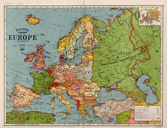 | Keywords: Bacon's Standard Map of Europe WDL528.png Artwork ru Бэйкон Г В 1830-1921 fr Bacon G W 1830-1921 en Bacon G W 1830-1921 zh 培根 G W 1830-1921 pt Bacon G W 1830-1921 ar بيكون ج و 1830-1921 es Bacon G W 1830-1921 ru Cтанда тная ка та Ев опы Бэйкона fr Carte standard de l'Europe selon Bacon en Bacon's Standard Map of Europe zh 培根的标准欧洲 图 pt Mapa Padrão da Europa por Bacon ar خريطة أوروبا القياسية لبيكون ru а данной ка те составленной выдающимся английским издателем Дж В Бэконом основавшим компанию Дж В Бэкон и Ко Лтд изоб ажена те ито ия Ев опы с азу же после окончания Пе вой ми овой войны В числе политических и те ито иальных изменений возникших в езультате войны были аспад Авст о-Венге ской и Османской импе ий све жение ца ского п авительства в России основание или восстановление независимых госуда ств Эстония Латвия Литва Польша Чехословакия и Югославия пе еход Эльзаса-Лота ингии от Ге мании к Ф анции и асши ение те ито ии Италии в состав кото ой вошел егион около Т иеста а вставке в п авом ве хнем углу п иведены данные по плотности населения кото ая отличалась в азличных егионах от малонаселенного севе ного Скандинавского егиона до плотнозаселенных айонов западной Ге мании ижних ст ан ныне Бенилюкс и южной Англии Согласно данным этой ка ты общая численность населения Ев опы составляла в то в емя 475 миллионов человек а ка те также отоб ажены па оходные ма ш уты и часовые пояса fr Cette carte de l'Europe réalisée par l'éminent éditeur britannique G W Bacon Co Ltd montre l'Europe au lendemain de la Première Guerre mondiale Parmi les changements politiques et territoriaux apportés par la guerre on peut noter la dissolution des empires austro-hongrois et ottoman le renversement du gouvernement tsariste en Russie l'établissement ou le rétablissement des États indépendants de l'Estonie la Lettonie la Lituanie la Pologne la Tchécoslovaquie et la Yougoslavie le transfert de l'Alsace-Lorraine de l'Allemagne à la France et l'extension du territoire italien jusqu'à la région de Trieste L'encart en haut à droite indique les densités de population de la très peu peuplée Scandinavie au nord jusqu'aux régions plus fortement peuplées de l'Allemagne de l'ouest des Pays-Bas et du sud de l'Angleterre La carte indique une population totale en Europe de l'ordre de 475 millions de personnes Elle comporte également la représentation des routes de navigation et des fuseaux horaires en This map of Europe by the prominent British publisher G W Bacon Co Ltd shows Europe in the immediate aftermath of World War I Among the political and territorial changes brought about by the war were the dissolution of the Austro-Hungarian and Ottoman empires the overthrow of the tsarist government in Russia the establishment or re-establishment of the independent states of Estonia Latvia Lithuania Poland Czechoslovakia and Yugoslavia the transfer of Alsace-Lorraine from Germany to France and the expansion of Italian territory to include the region around Trieste The inset map at the upper right shows population densities ranging from the very sparsely populated northern Scandinavia to the thickly settled regions of western Germany the Low Countries and southern England The map gives a total population for Europe of 475 million people Also shown are steamship routes and time zones zh 这幅由英国出版商 G W Bacon Co Ltd 出版的欧洲 图 显示了 战刚结 后的欧洲情况 战 带 的政治和领 变化包括奥匈 国和奥斯曼 国的解体 推翻沙皇政 统治的俄罗斯 爱沙尼亚 拉脱维亚 立陶宛 波兰 捷克斯洛伐克和南斯拉夫等国家的建立和重建 德国把阿尔萨斯-洛林割让给法国以及意大利将环里雅斯特 区纳入版图实现了领 扩张 右上角的插页 图显示的是人口密度,从人口 常 少的斯堪的纳维亚北部到人口密集的德国西部 区 低 国家和英格兰南部 该 图显示的欧洲 人口为 4 75 亿 该 图同时还显示 轮船航线和时区 pt Este mapa da Europa da proeminente editora Britânica G W Bacon Co Ltd mostra Europa sob as consequências imediatas da I Guerra Mundial Entre as mudanças políticas e territoriais provocadas pela guerra estavam a dissolução dos impérios Austro-Húngaro e Otomano a derrota do governo czarista na Rússia o estabelecimento ou o re-estabelecimento de Estados independentes da Estônia Letônia Lituânia Polônia Tchecoslováquia e Iugoslávia a cessão da Alsácia-Lorena da Alemanha para a França e a expansão do território italiano a fim de incluir a região em torno de Trieste O mapa inserido no canto superior direito mostra as densidades populacionais que vão desde o muito pouco povoado norte da Escandinávia até as densamente povoadas regiões da Alemanha ocidental o Países Baixos e o sul da Inglaterra O mapa apresenta uma população total na Europa de 475 milhões de pessoas São também mostradas rotas de barcos a vapor e fusos horários ar تظهر هذه الخريطة لأوروبا التي وضعتها دار النشر البريطانية البارزة ج و بي