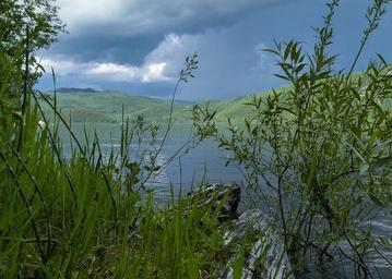 Keywords: thunderstorm weather canim lake british columbia canada scenery landscape clouds trees nature water