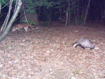 Keywords: Badger and Fox on trail cam.jpg en These two often forage together own Hildesvini Cc-zero Meles meles Vulpes vulpes