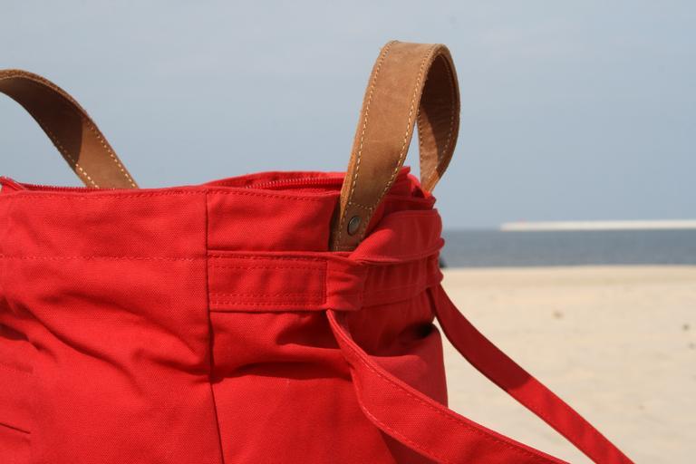Keywords: bag beach bag red beach sand sky sea water holiday sand beach summer sun holidays ocean