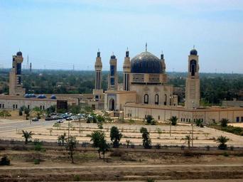 | Keywords: Baghdad Mosque Umm al-Qura, as seen from the freeway in April 2004.jpg Uploaded with en wp UW marker 2016 10 10 مشهد لجامع أم القرى كما يشاهد من على طريق الخط السريع Umm al-Qura mosque in April 2004 showing three of the four perimeter minarets each resembling a Kalashnikov rifle and three of the four minarets around the dome each in the shape of a Scud missile on its Launchpad Umm_al-Qura_Mosque Source I was part of 1/227 AVN BN 1 CD in OIF 1 2 and 3 I took this photo as our convoy drove through Baghdad on our way to Camp Taji I rode in one of the larger trucks standing up through a hole in the roof to be able to fire my weapon but I had such a great unobstructed view I was more interested in getting pictures of Baghdad with my disposable Kodak camera I was lucky I had my camera in hand or else I would've missed it <br/> Previously published Never published own 2004-04-18 SPC Jeffrey Allan Backowski II ;Other information I scanned this picture over a decade ago and I still have the original if I were to scan it on a new scanner it would look way better Mosques in Baghdad Mosques in Iraq Arabic architecture |