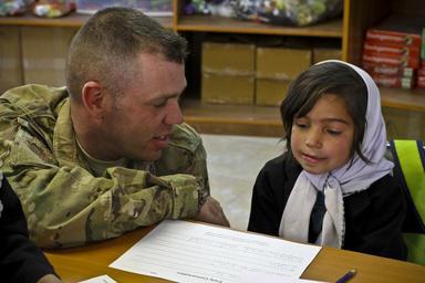 | Keywords: u.s. air force usairforce u.s. army usarmy afghanistan bagram parwan province parwanprovince air force airforce operation enduring freedom operationenduringfreedom oef isaf nato creative commons royalty free public domain photo photograph digital matt hecht getty reuters ap people U.S. Air Force Master Sgt. James Wooding assists an Afghan girl with her classwork at The Cat in the Hat Language Arts Center, a new school at Bagram Airfield, Afghanistan, on Nov 13, 2011. The school, run by the U.S. Army, helps to teach young students English. U.S. Air Force Master Sgt. James Wooding assists an Afghan girl with her classwork at The Cat in the Hat Language Arts Center, a new school at Bagram Airfield, Afghanistan, on Nov 13, 2011. The school, run by the U.S. Army, helps to teach young students English. |