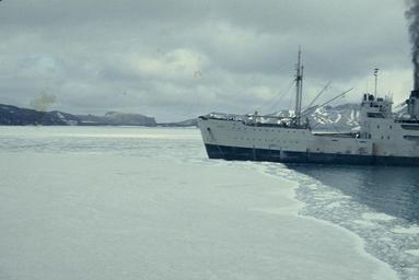 | Keywords: Bahía Foster2.JPG El Angamos en bahía Foster isla Decepción Quebrando el brush Breaking sea ice in Foster Bay w Deception Island own con mi Voighlander Vito II 1957-11 Jorge Valdés R Jorval Antártica Chilena History of Antarctica Vehicles of Antarctica Deception Island |