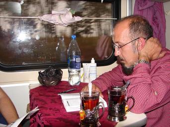 Keywords: Baikal Express -Transiberiana-.jpg Franco Zanghi' sul Baikal Express in Siberia 2005-09-25 own assumed Tindarys Rail transport in Russia Tea of Russia Podstakannik