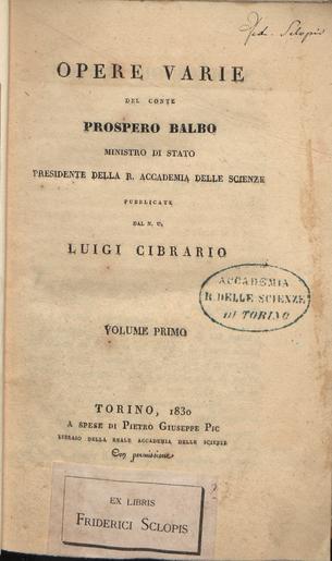 | Keywords: Balbo - Opere, 1830 - 773338.tif Book Balbo Prospero Opere a spese di Pietro Giuseppe Pic librario della Reale Accademia del le Scienze Torino ita it Opere varie del Conte Prospero Balbo Ministro di Stato presidente della R Accademia delle Scienze pubblicate dal N U Luigi Cibrario volume primo - Torino a spese di Pietro Giuseppe Pic librario della Reale Accademia del le Scienze 1830 - XIV 2 324 p ; 22 cm BEIC 773338 Institution BEIC PD-old-100-1923 Mathematics book covers Astronomy books book covers single pages etc Geography books book covers single pages etc Physics books book covers single pages etc 1830 in science |