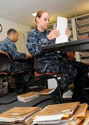 Keywords: Balboa PSD Service Record Phase Out DVIDS304238.jpg en Seaman Alicia Drake assigned to Personnel Support Detachment Balboa works on the Navy-wide phase out of the Enlisted Field Service Records converting from paper files to electronic files Drake is part of the eight-member team who work around the clock to reach their May 31 goal of phasing out all 4 200 Enlisted Field Service Records PSD Balboa takes care of all enlisted personnel service records for Naval Medical Center San Diego USNS Mercy Naval School of Health Sciences San Diego all outlying clinics assigned to NMCSD and the Fleet Industrial Supply Center The Navy deadline is Sept 30 PSD Balboa has already phased out 1 000 records since they started May 3 2010-05-10 Petty Officer 1st Class Anastasia Puscian https //www dvidshub net/image/304238 100728-N-+++++-001 2010-07-28 16 19 SAN DIEGO CA US PD-USGov-Military-Navy USNS Mercy T-AH-19 Images from DoD uploaded by Fæ