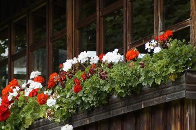 Keywords: balcony glazed old farmhouse facade glasses building architecture old house live home window geranium decoration jewellery floral decorations balcony boxes red white red white decorated