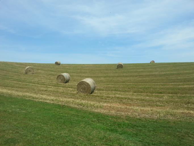 Keywords: bale straw hay field farm countryside agricultural scenery landscape land iowa sky grass country