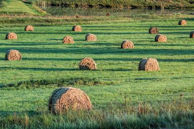 Keywords: bales fodder hay cattle feed farm agriculture straw harvest rural summer autumn landscape green meadow countryside dawn morning farmland pasture sunrise desktop wallpaper