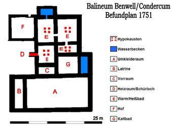| Keywords: Balineum Benwell.png en Groundplan roman Bathouse in Benwell/Condercum 1751 de Grundriss des römischen Badehauses balineum von Benwell/Condercum GB Befunde von 1751 own Veleius 2016-01-09 Vorlage in John Collingwood-Bruce Handbook to the Roman Wall 12 Ausgabe 1966 S 54 Cc-zero Condercum Benwell |